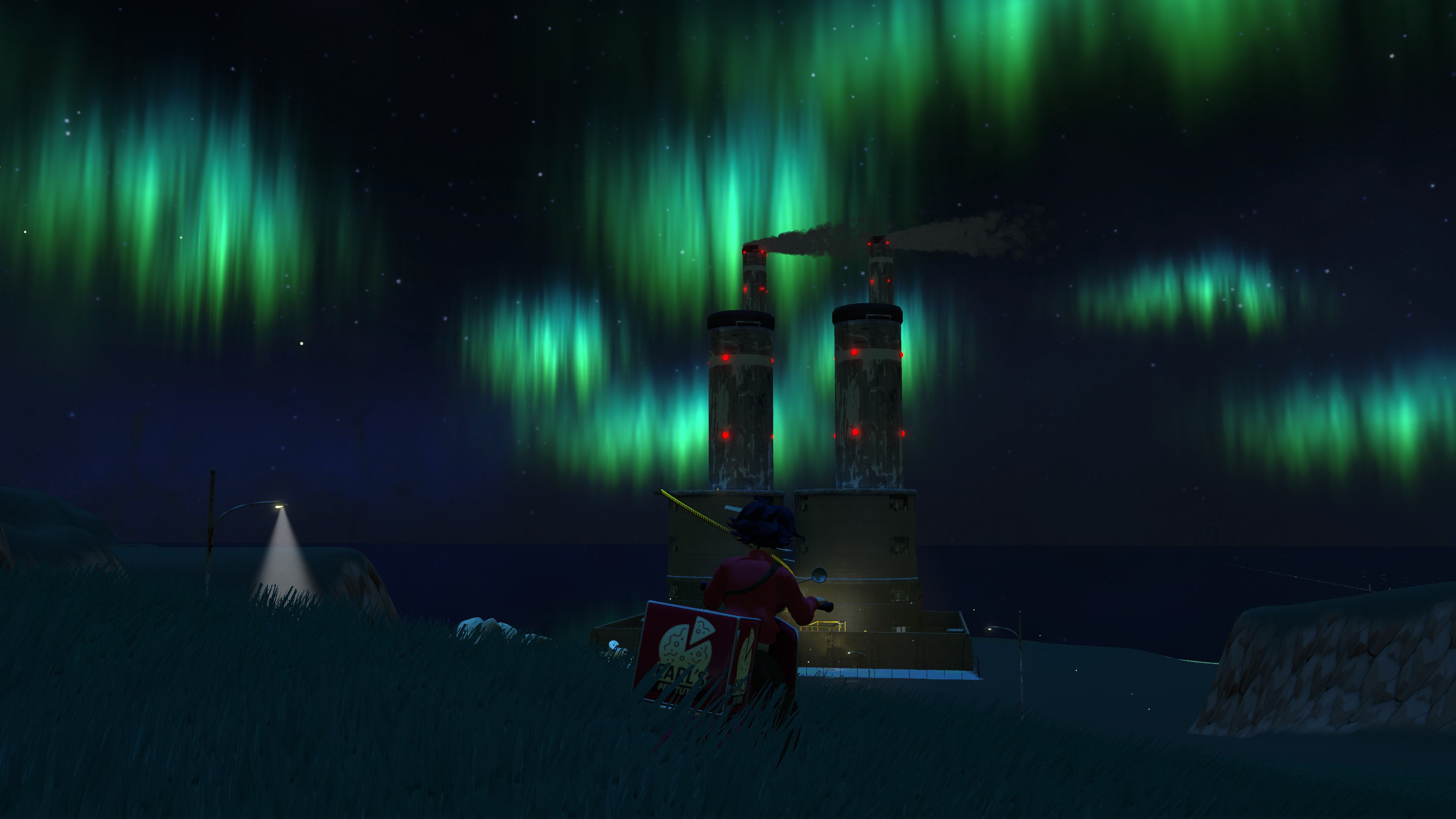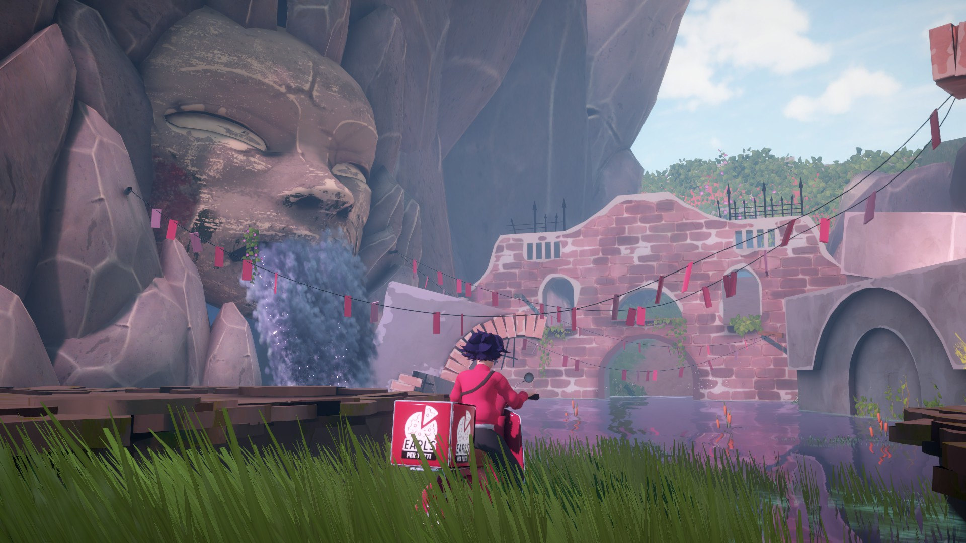 Vistiendo nuestro uniforme de repartidora, armadas con nuestra Vespa y la preciada carga, nos encontramos en un mundo 3D imaginativo sin mucho contexto. Controlamos a B con vista en tercera persona, con las acciones posible de recoger objetos, manejar la Vespa, agacharse y poco más. Vamos a tener que ir descubriendo qué hacer y dónde ir, siempre avanzando.