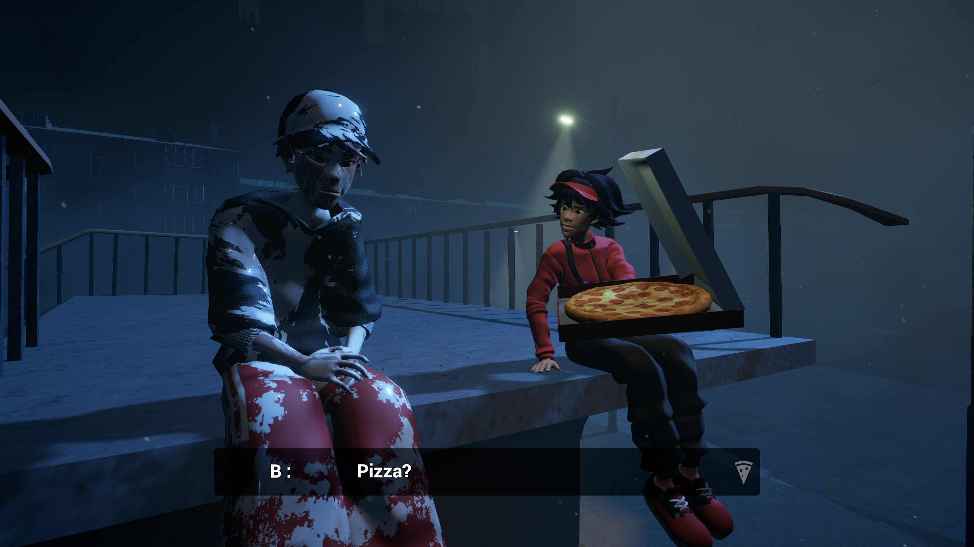 Juegas como “B”, una repartidora de pizza en su último pedido del día, que se embarca en un viaje onírico, recorriendo paisajes surrealistas, cambios repentinos de escenario y momentos de introspección. Este no es un lugar común: es un reino liminal donde las personas están atrapadas en un estado de anhelo y reflexión. Comparte pizza con personajes entrañables para descubrir sus historias, y la tuya también. Conduce y explora un mundo extraño y meditativo lleno de secretos.