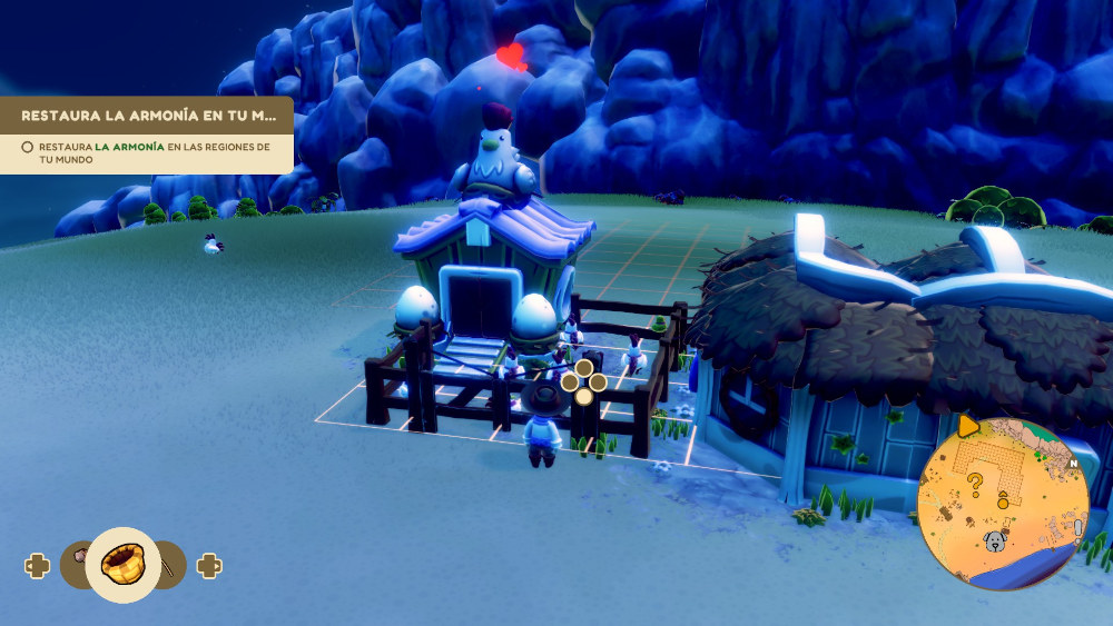La música acompaña muy bien, bastante calma como la sensación general del juego. Mucha música de acordeón. Además de las praderas, vamos a explorar otros biomas como la playa, las tierras altas y el mundo mágico. Los lugareños nos brindan tanto oportunidades para ayudarles como misiones secundarias. A medida que vamos recogiendo materiales u obteniéndolos (ordeñando, pescando, juntando huevos, etc), también podemos intercambiar cosas con ellos.