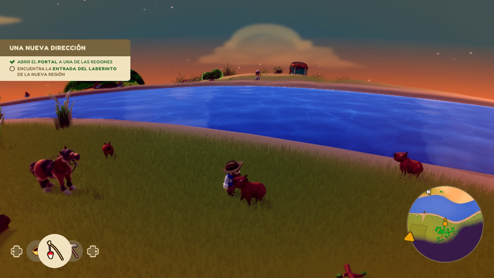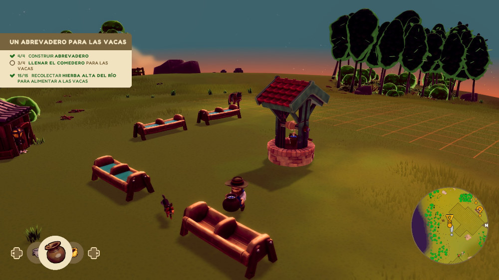 Gaucho and the Grassland nos presenta una aventura mística en las pampas de América Latina. Nuestra misión es devolver la armonía a estas tierras. Además de la historia principal, incluye características de simulador de granja. Vamos a tener que ayudar a reconstruir partes del campo, criar animales, conseguir materiales y más. Mientras jugaba me recordaba a experiencias similares a Animal Crossing o Harvest Moon, con toques del tipo de recolección y elaboración que popularizó Minecraft.